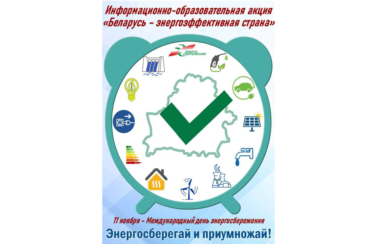 С 10 по 20 ноября 2025 года Департамент по энергоэффективности проводит республиканскую информационно-образовательную акцию «Беларусь – энергоэффективная страна». Она приурочена к международному Дню энергосбережения, который ежегодно отмечается 11 ноября.