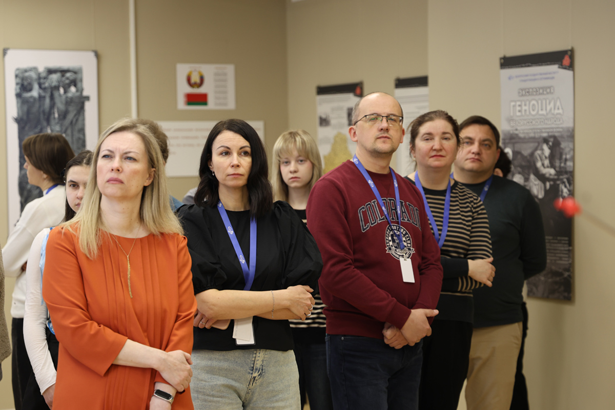 Мероприятие прошло в зале экспозиции "Геноцид белорусского народа в годы Великой Отечественной войны", действующей в БелГИСС с 2023 года.