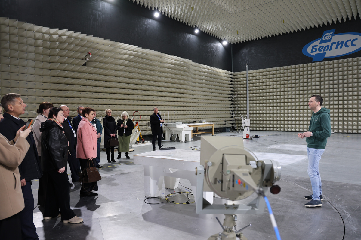 Гости также побывали в радиобезэховой камере и увидели, как на этой уникальной площадке проводятся испытания по электромагнитной совместимости промышленного оборудования, радиоэлектроники и электротранспорта.